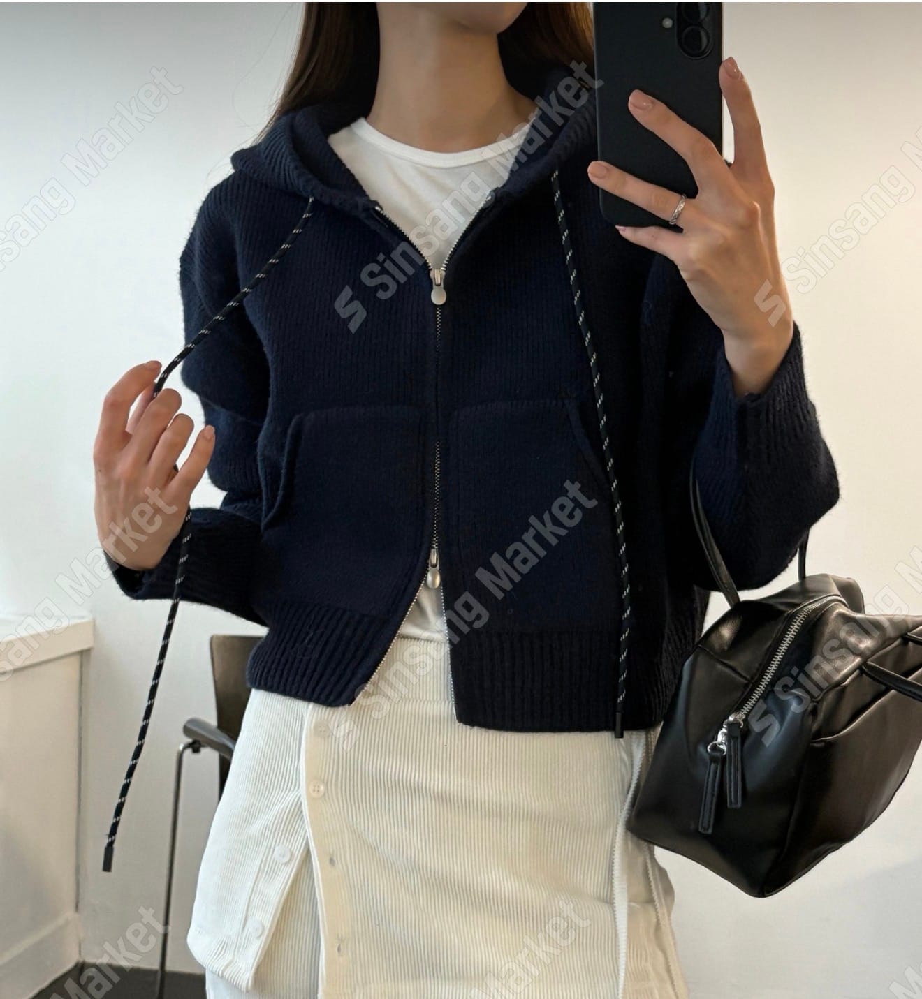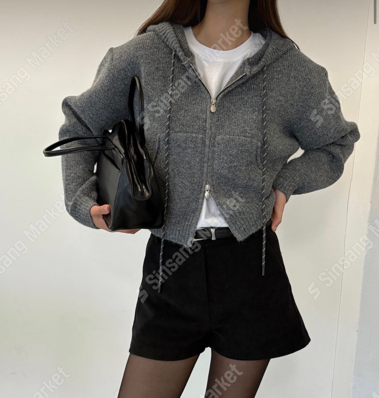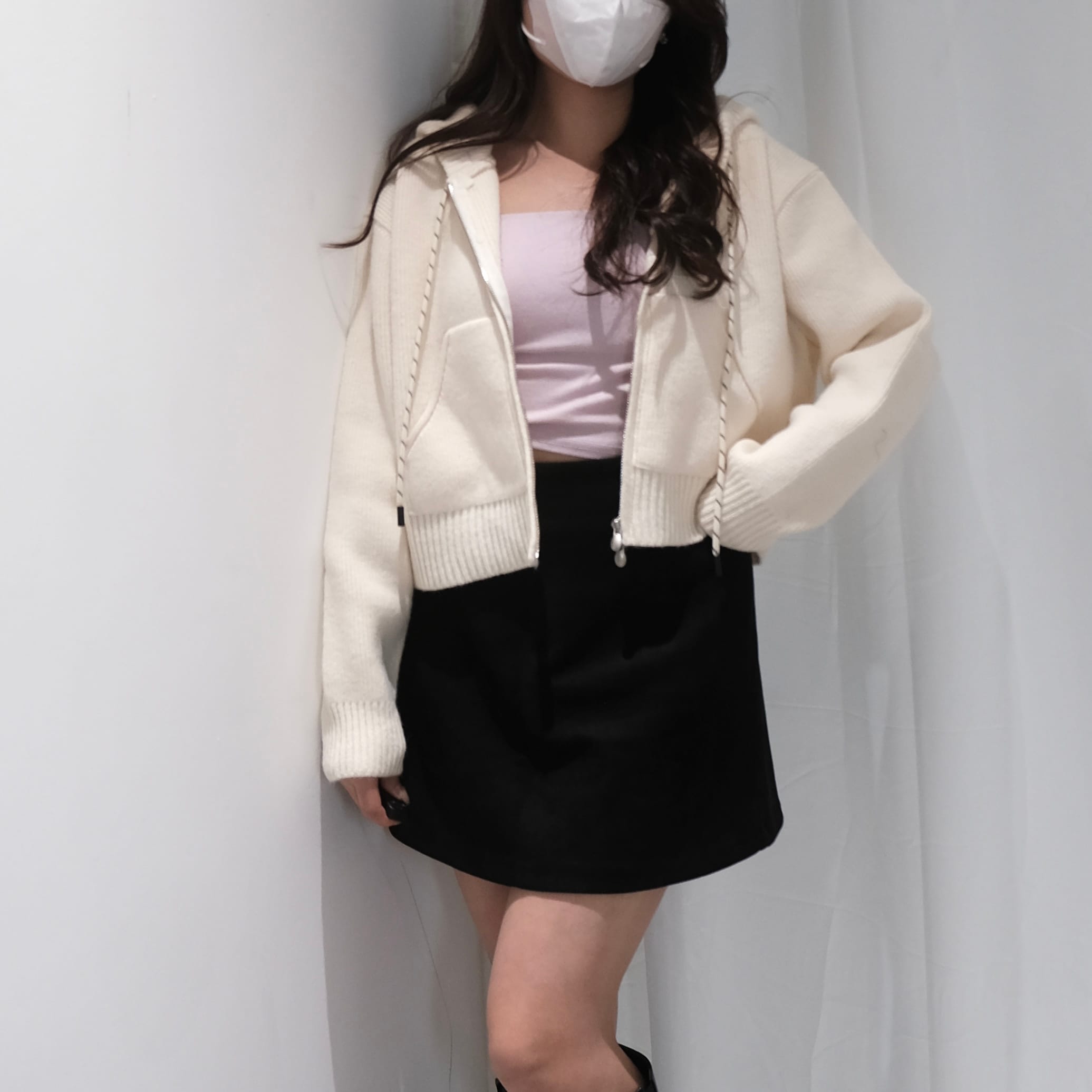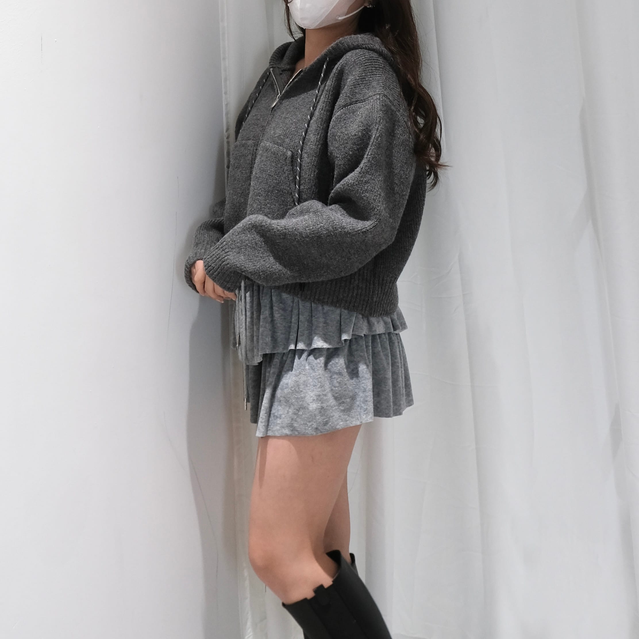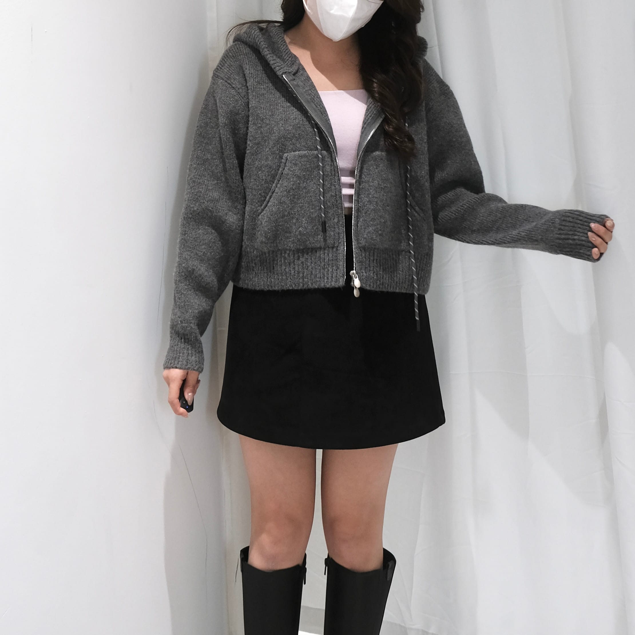 Cropped Knit Hoodie Jacket
