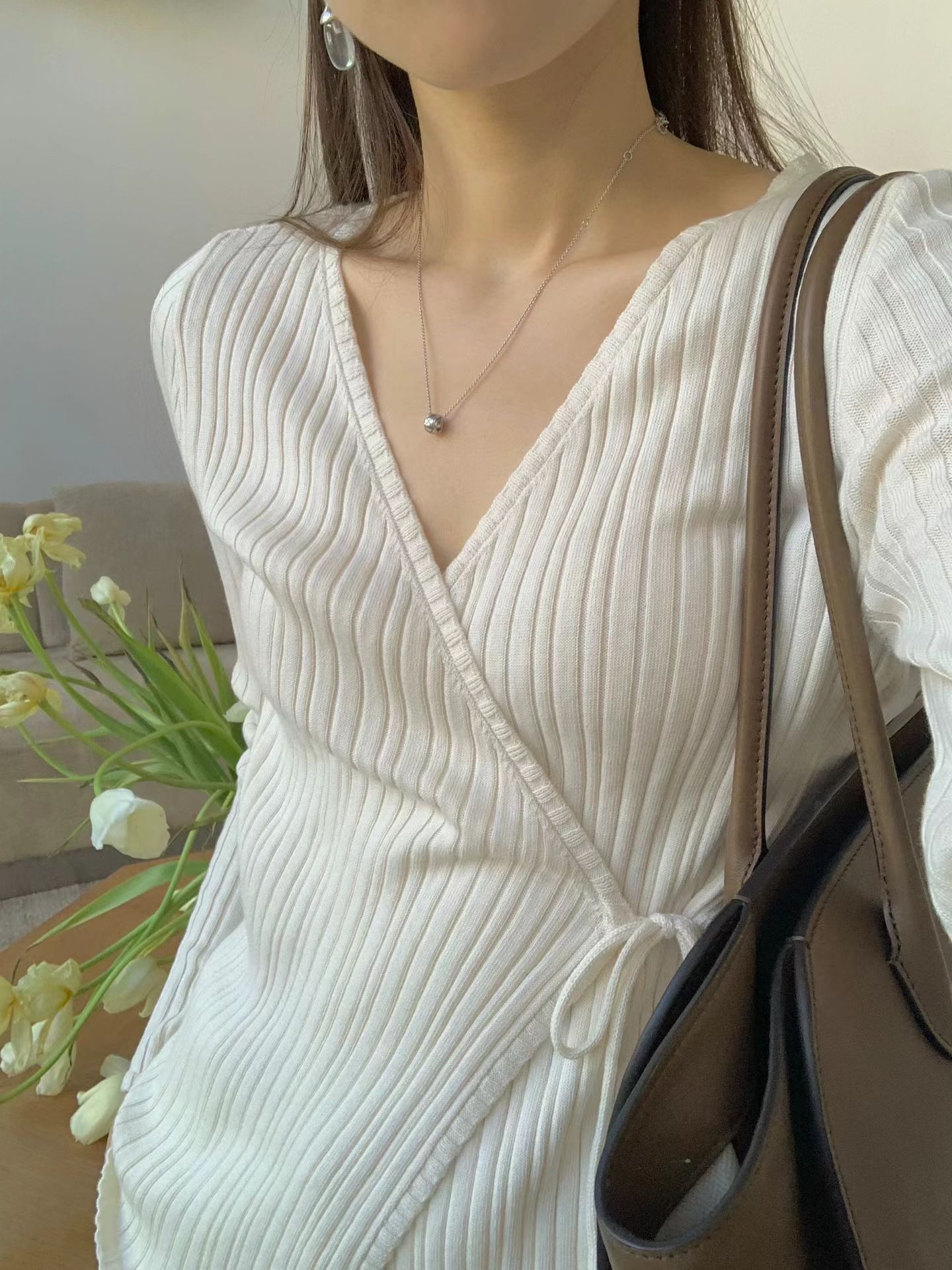 OUNCE Ruffle Rib Wrap Cardigan