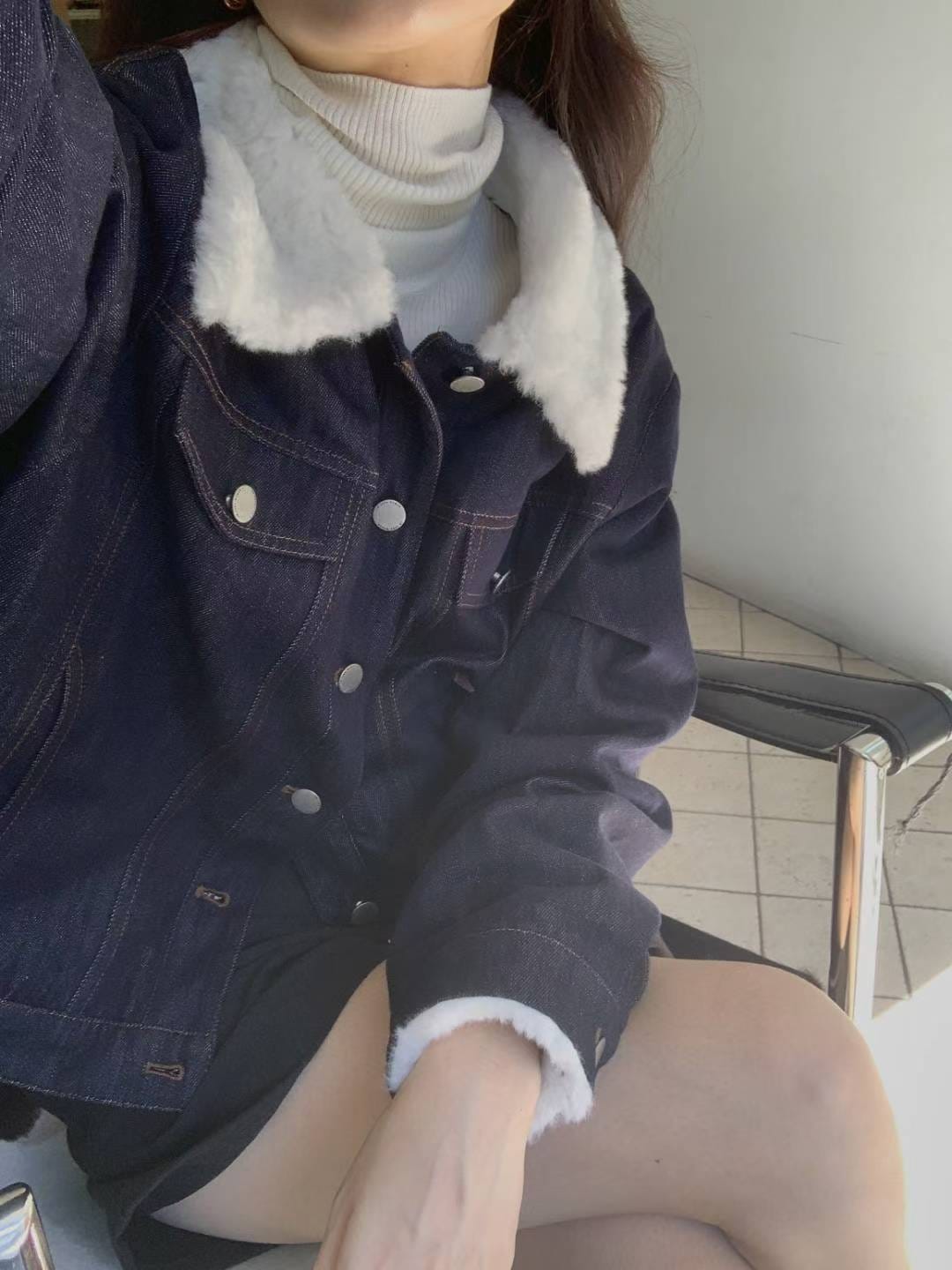 [Premium] Denim Patched Mouton Coat