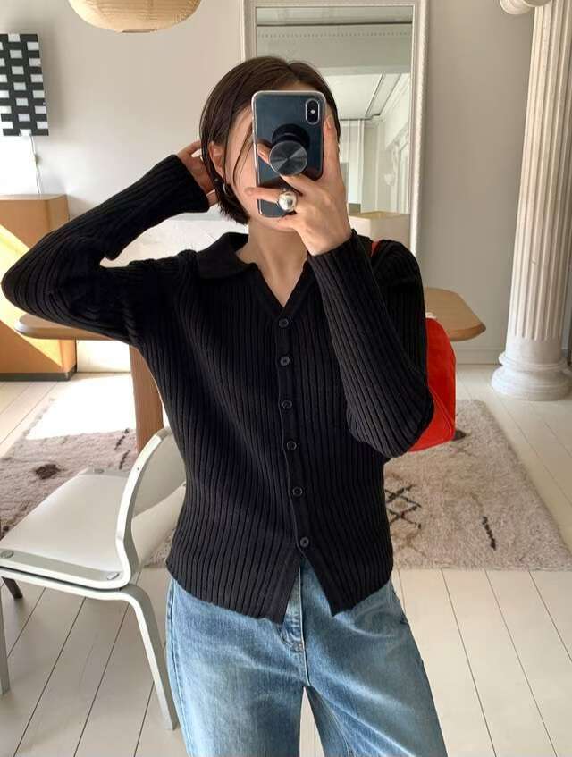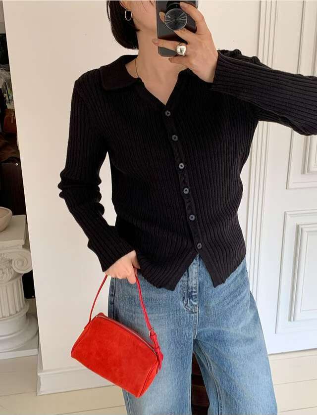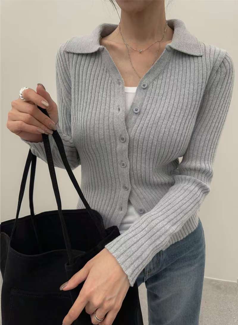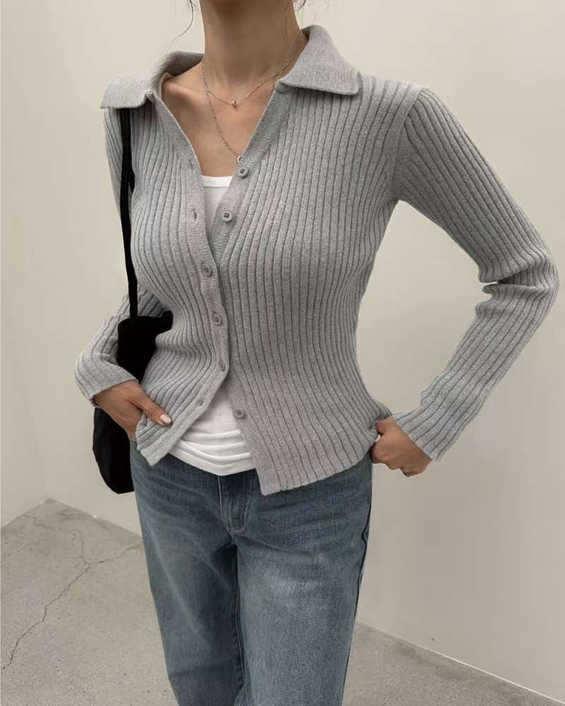 Vneck Ribbed Knit Cardigan