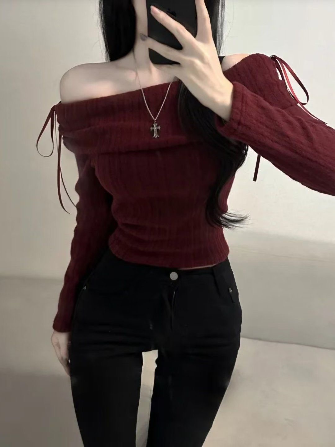 Double Ribbon Off Shoulder Top