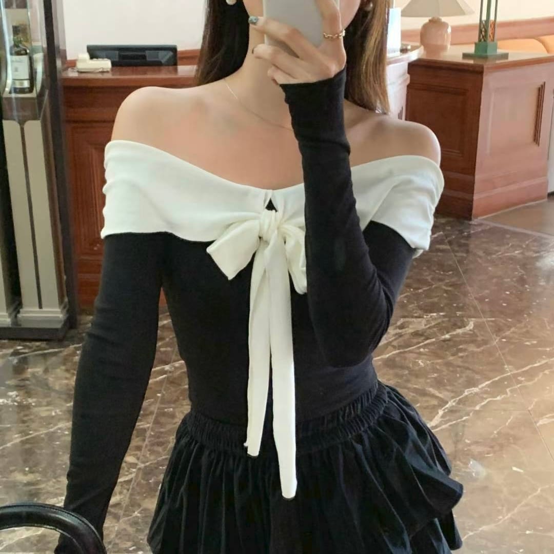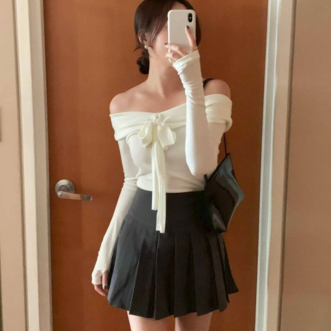 Elegant Ribbon Offshoulder Top