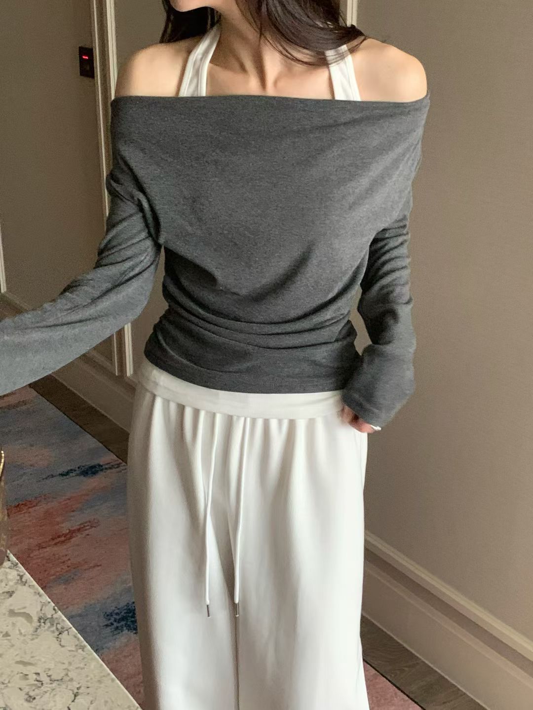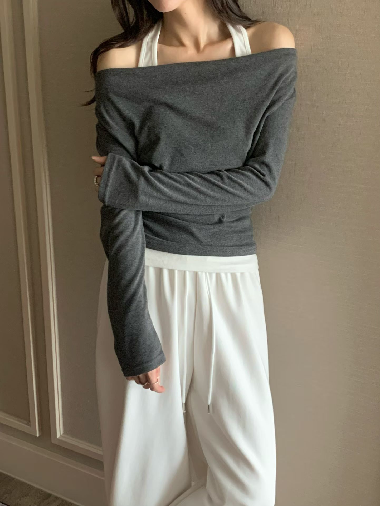 Halter Ruffle Off-shoulder Top