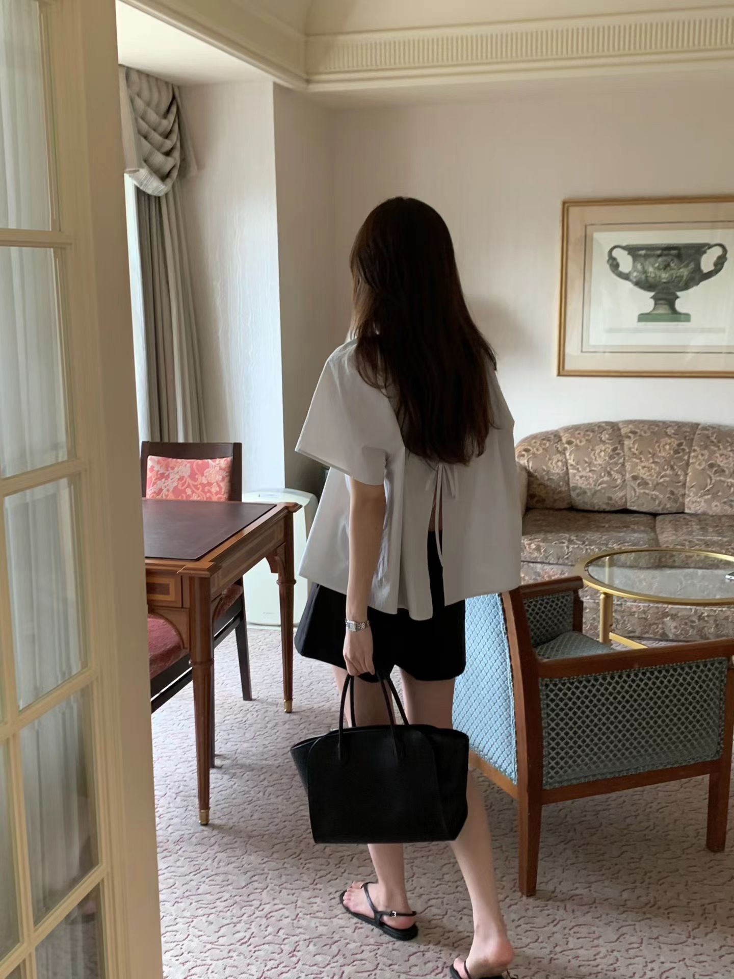 OUNCE Back Ribbon Shirring Blouse