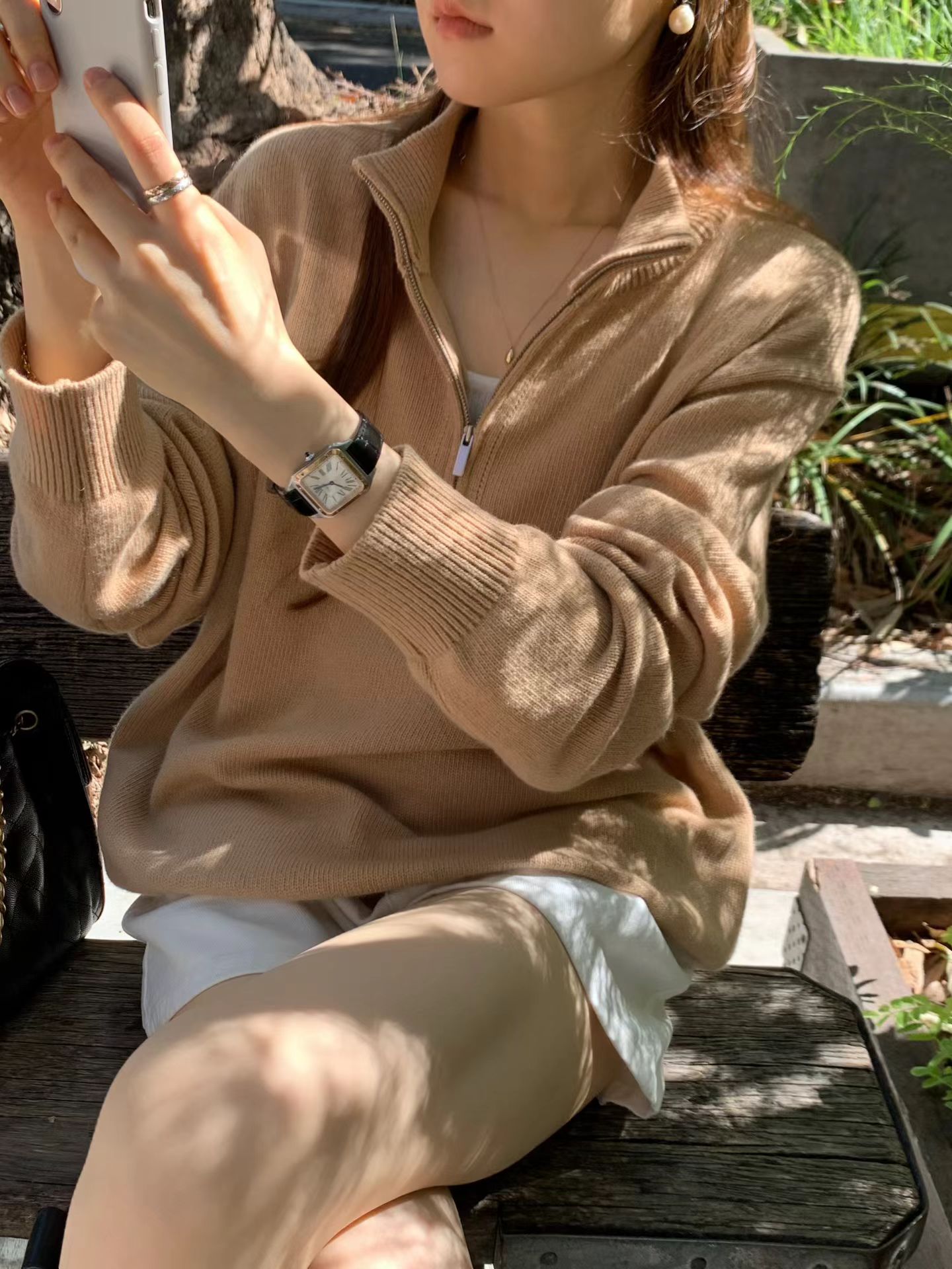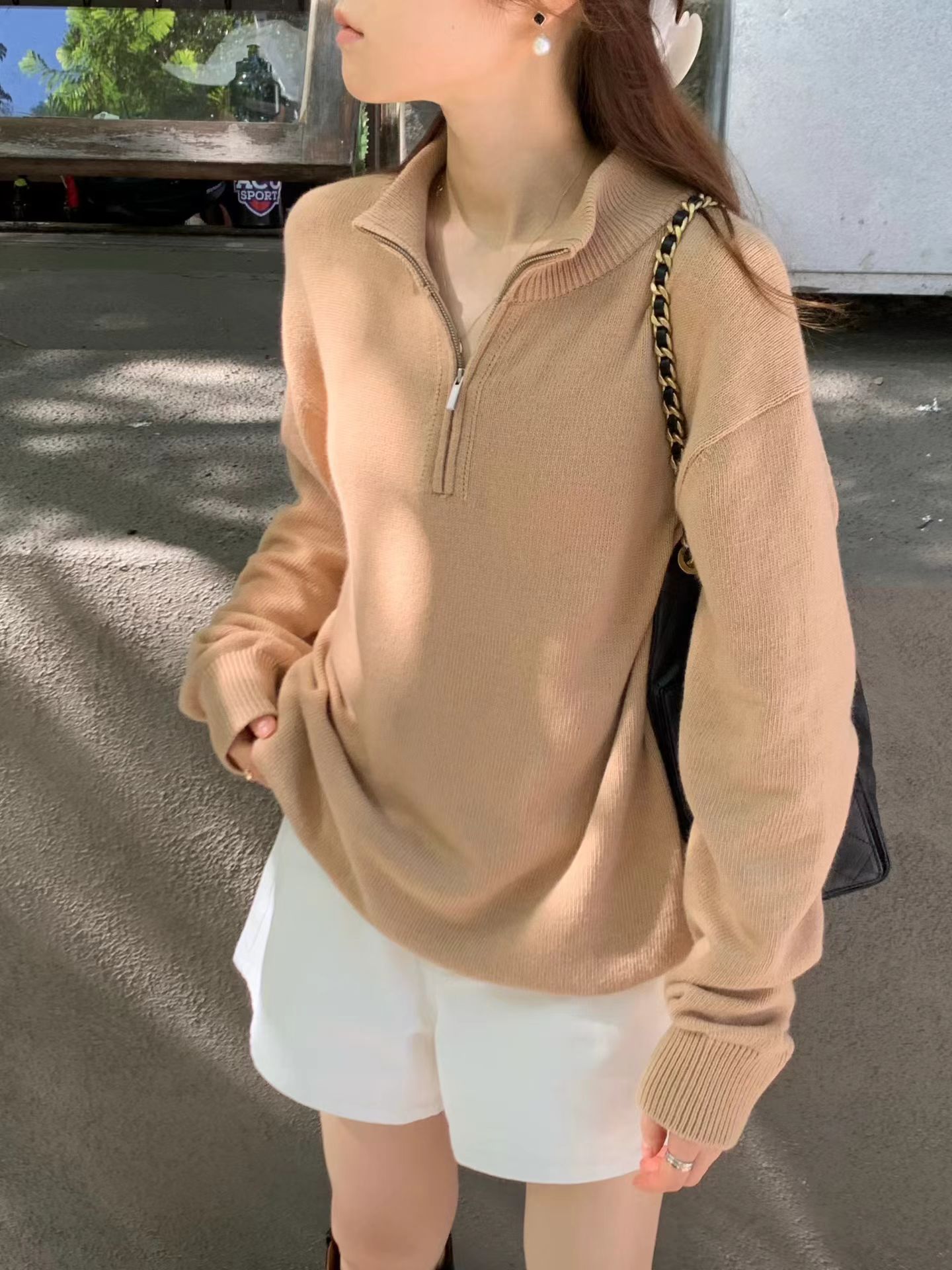 OUNCE Cashmere Half-Zip Knit Top