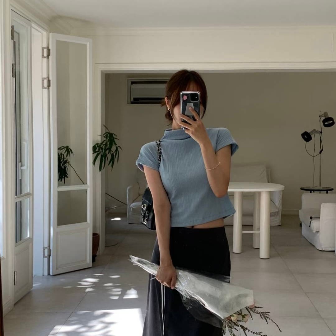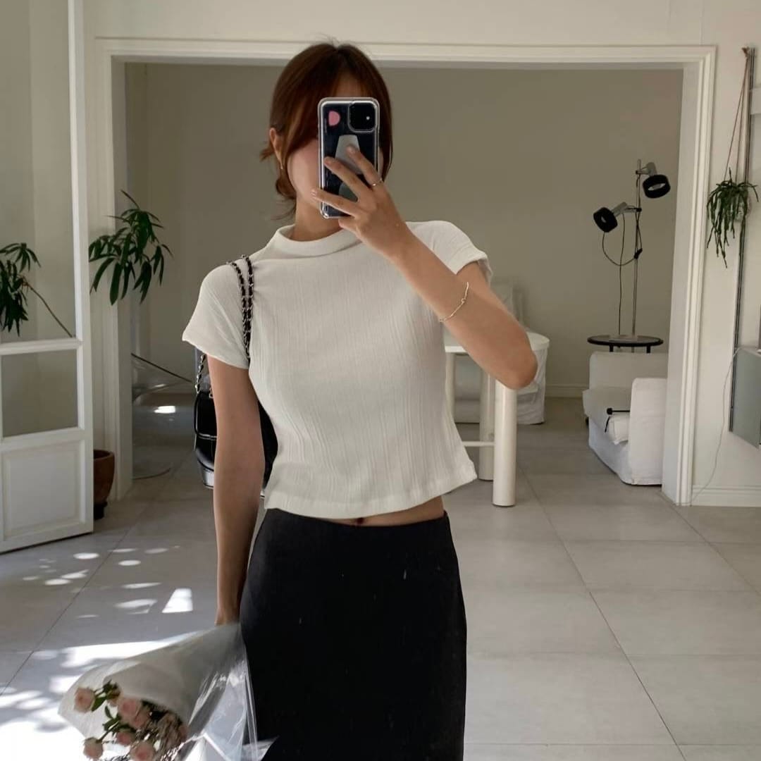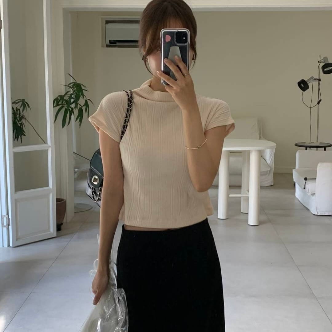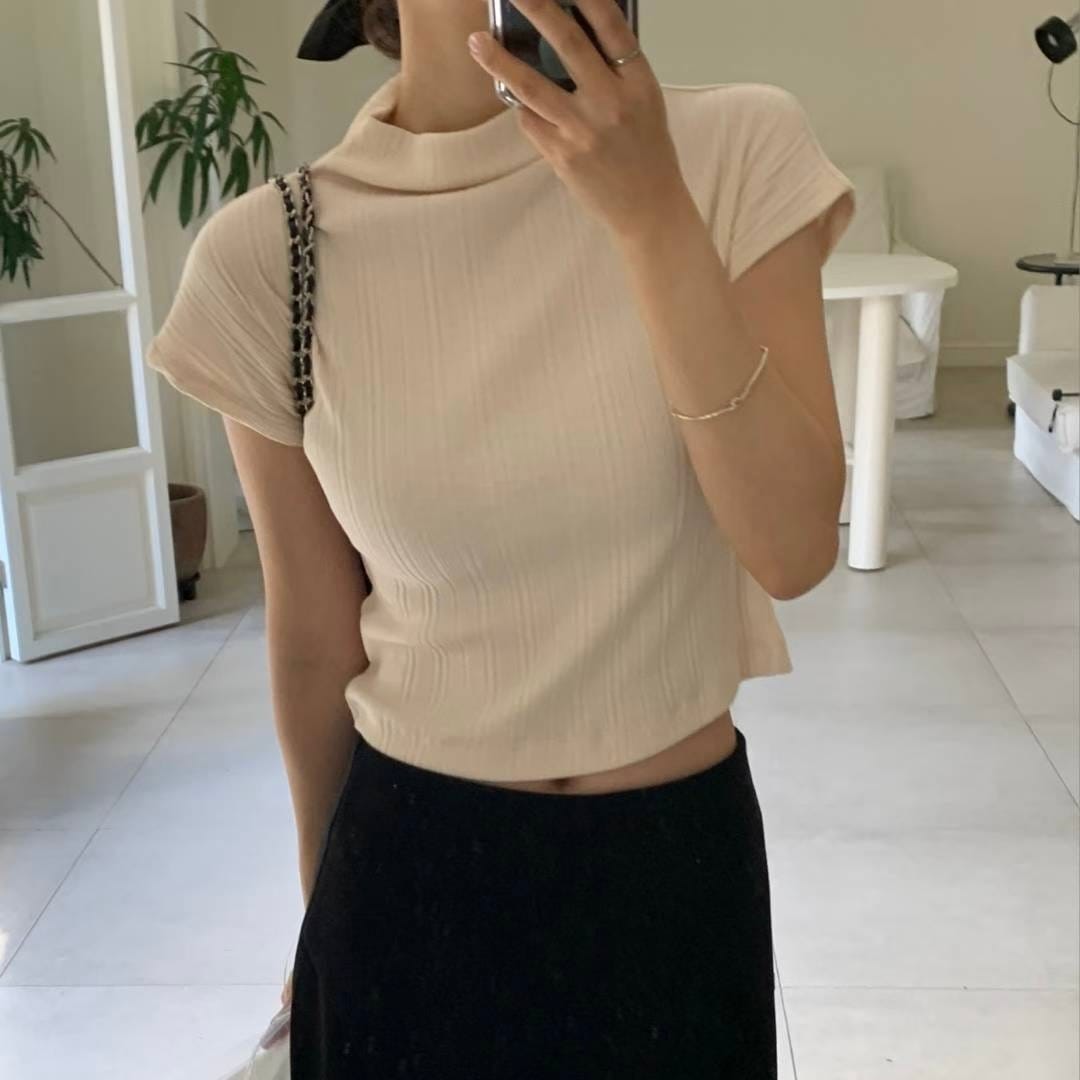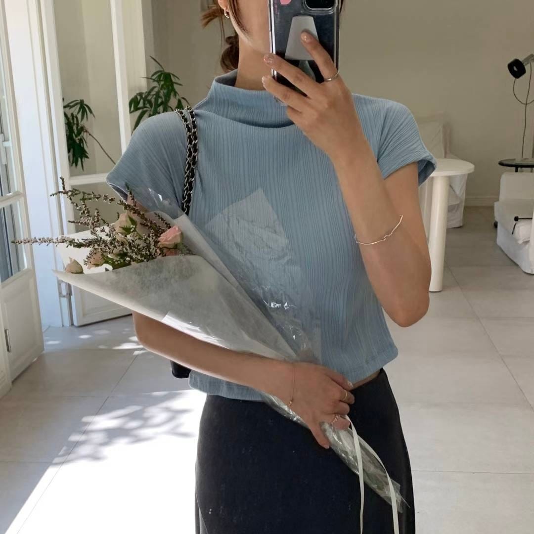 Pleated Mock Neck Crop Top