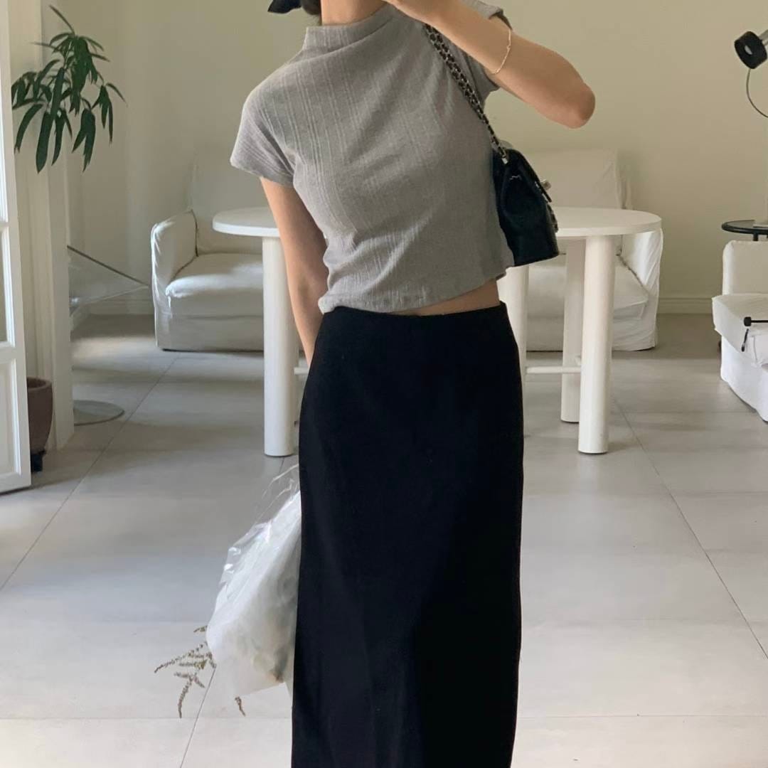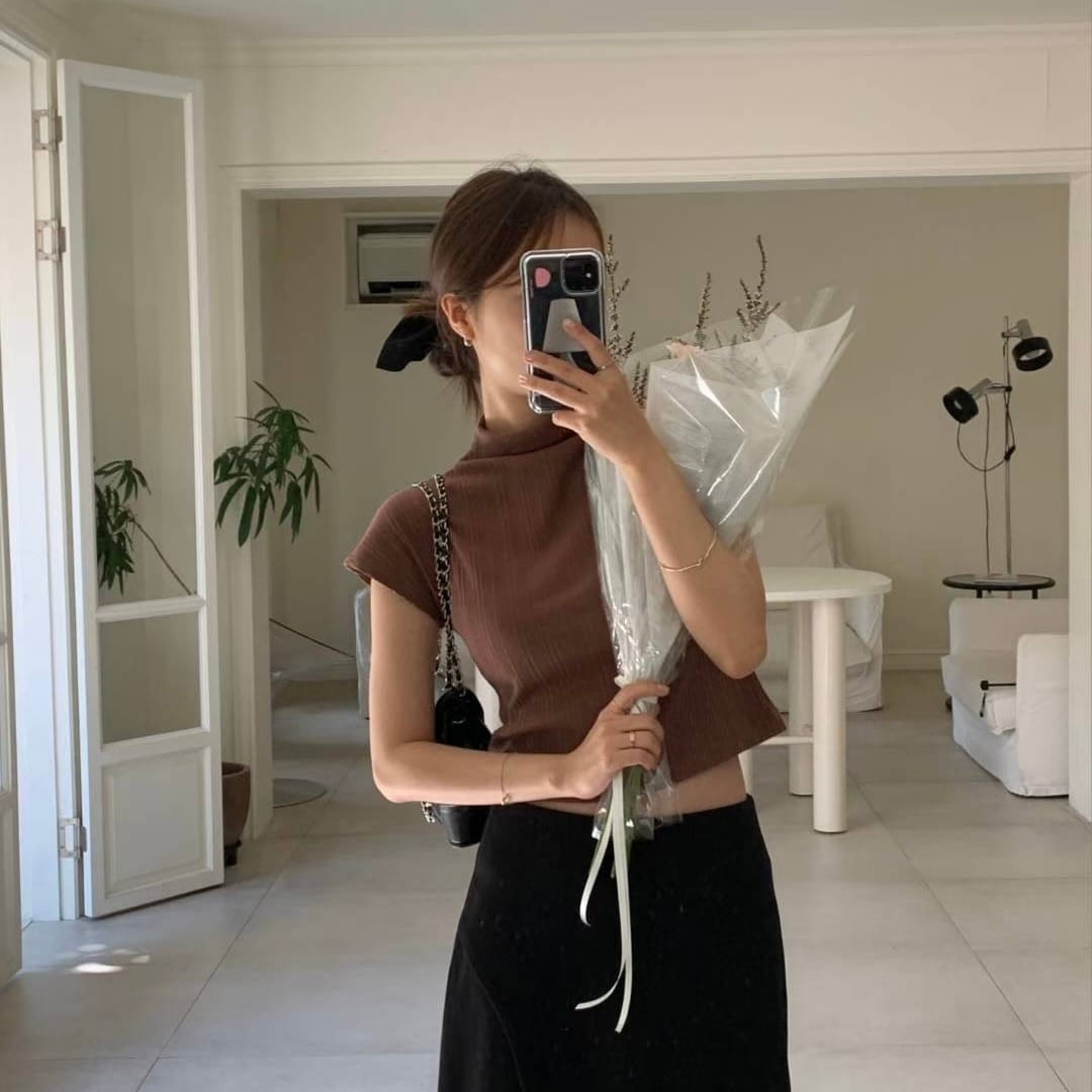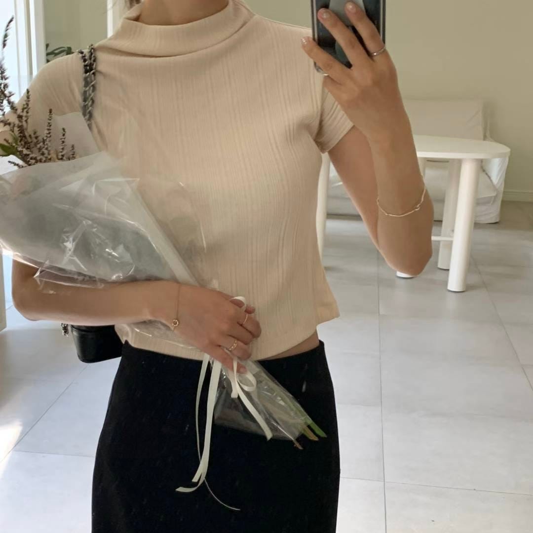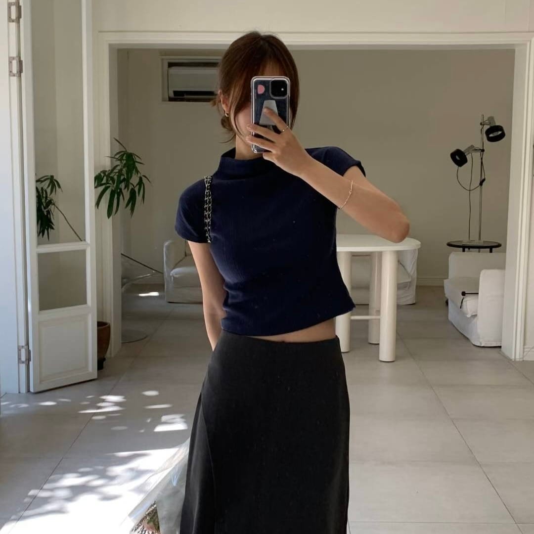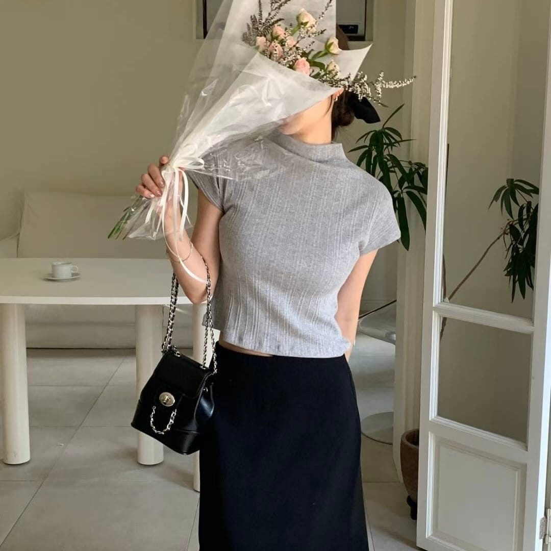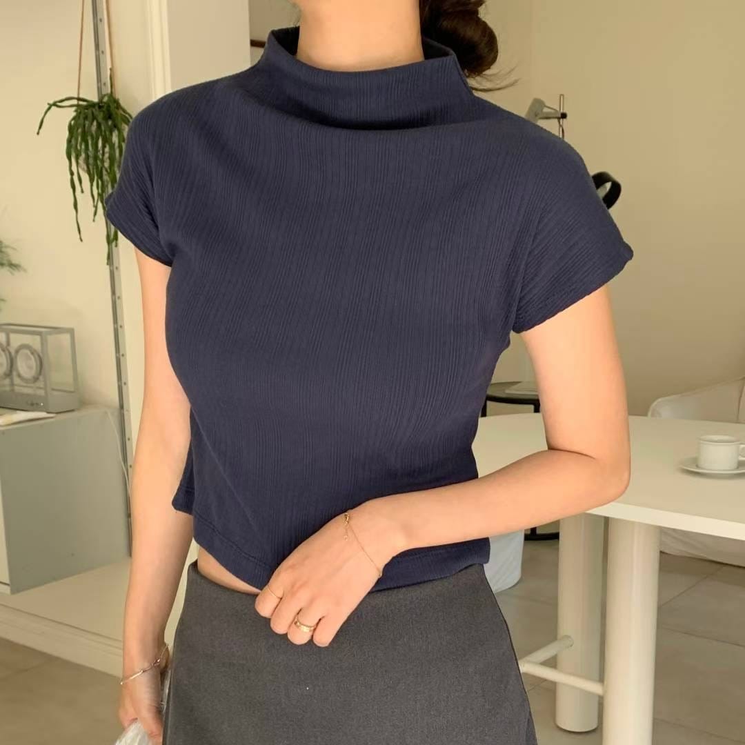 Pleated Mock Neck Crop Top