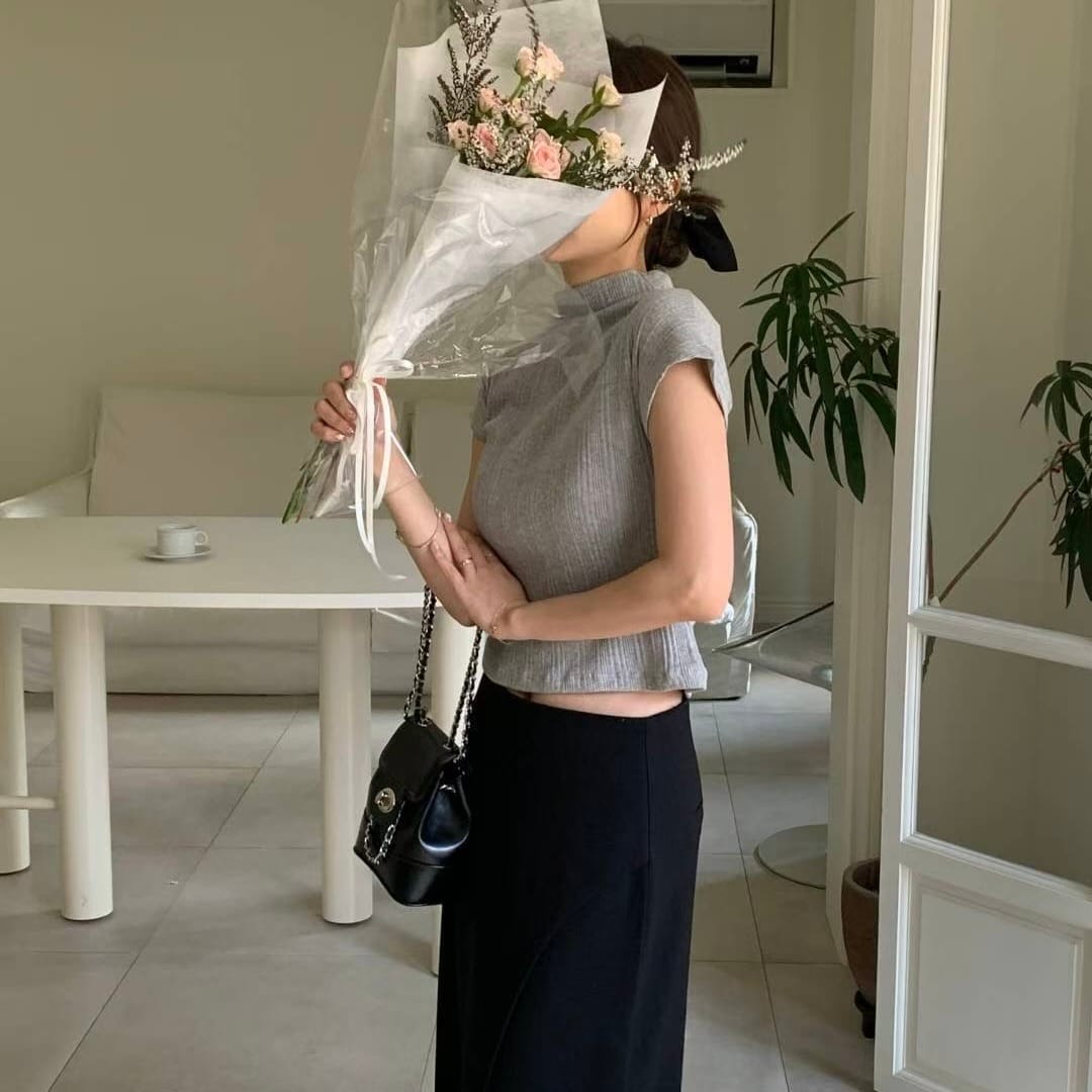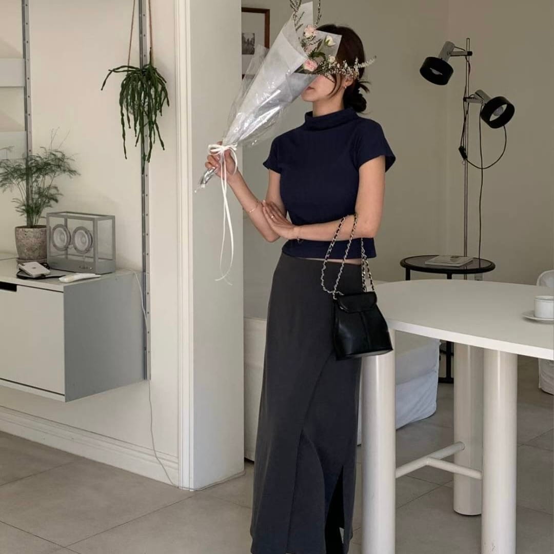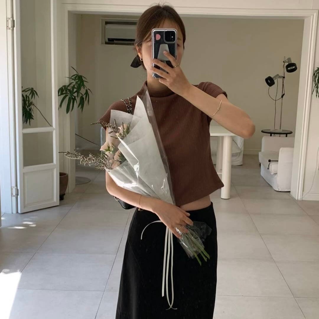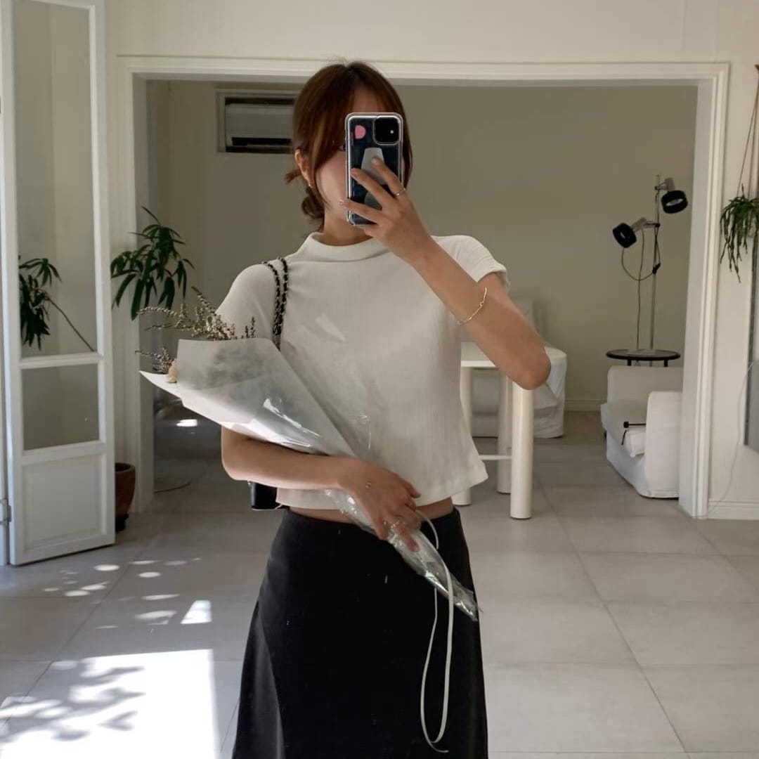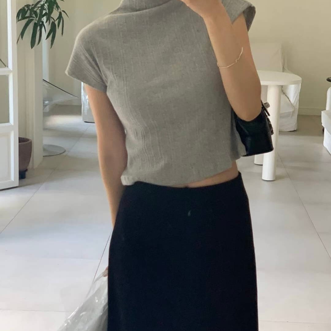 Pleated Mock Neck Crop Top