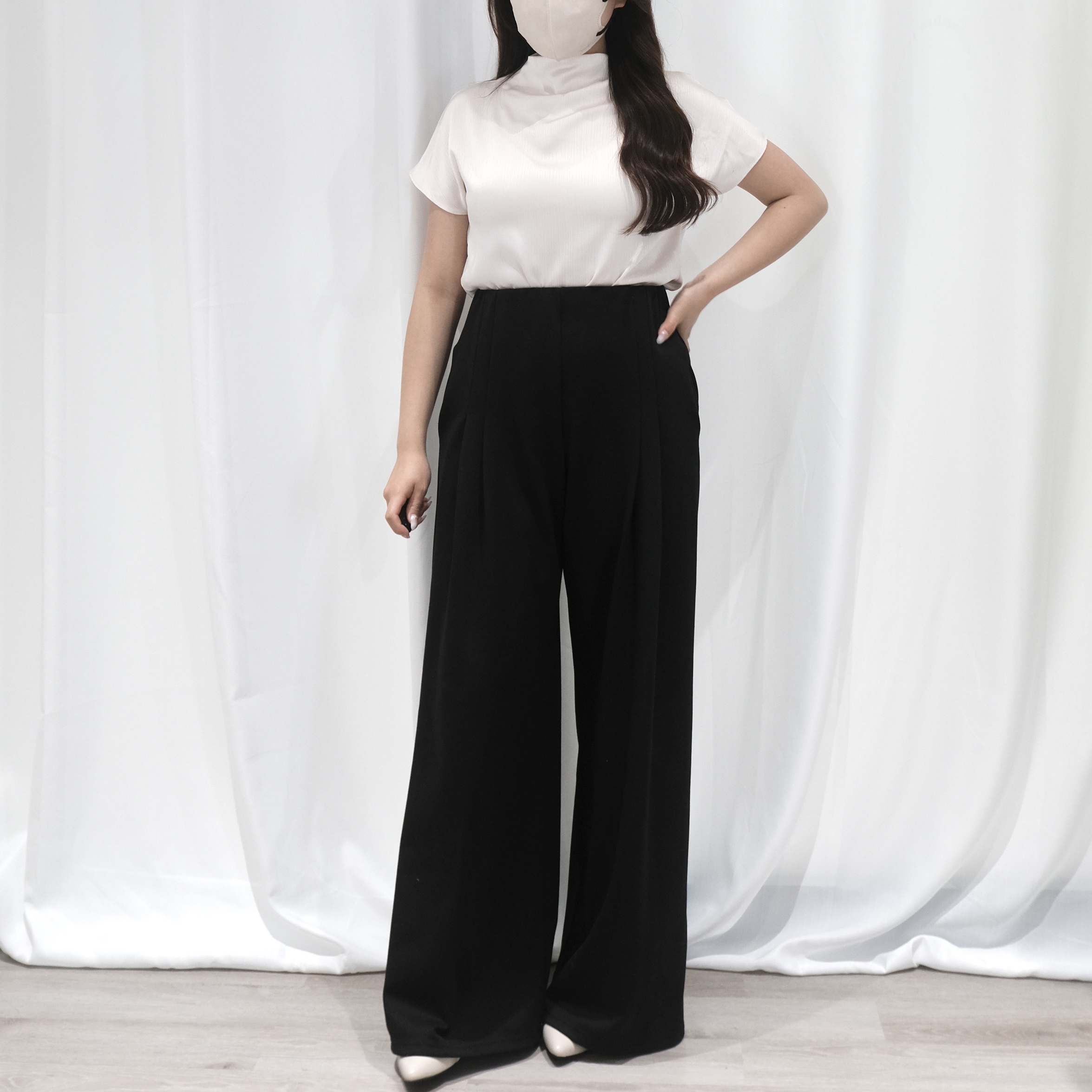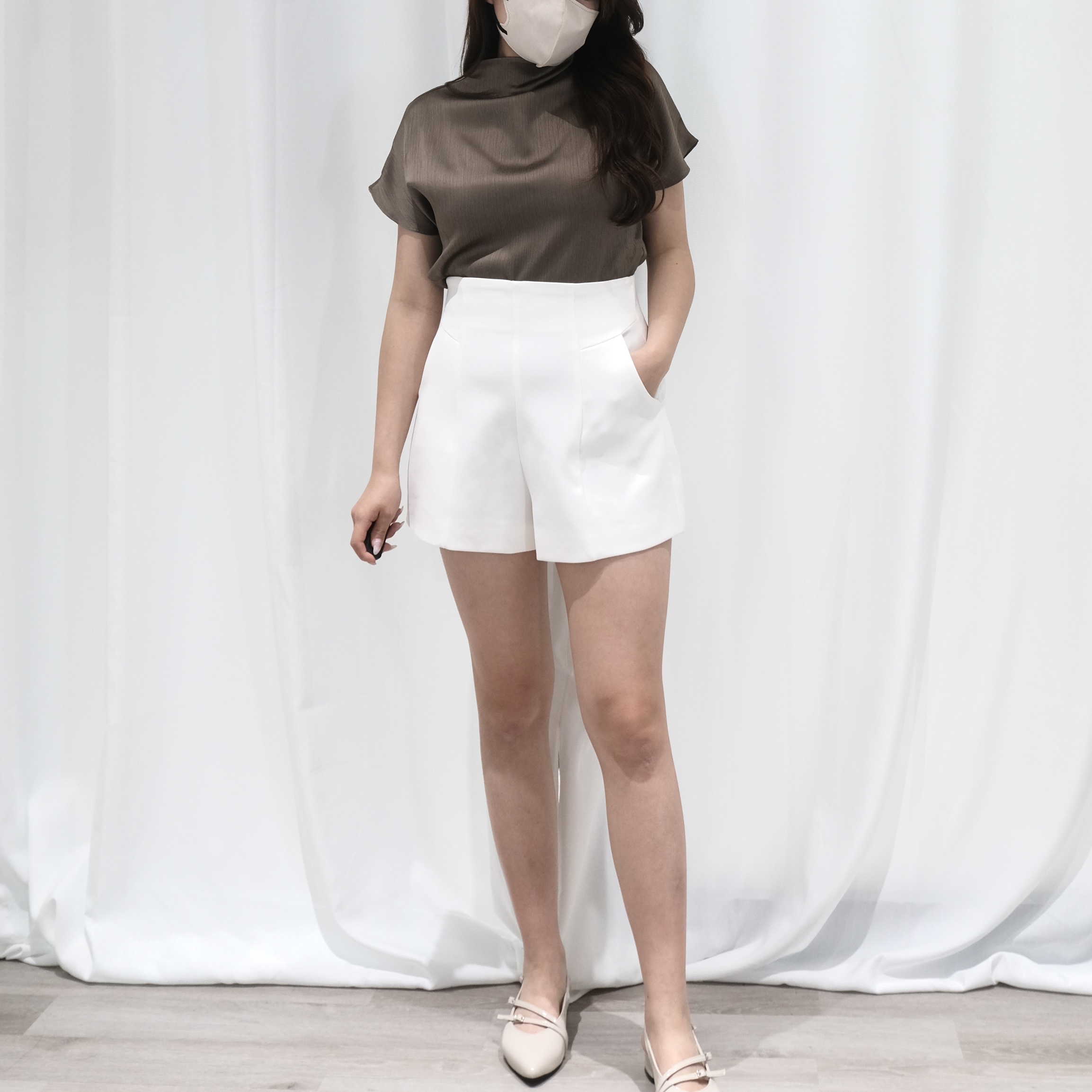 [Premium] Satin Mock Neck Top